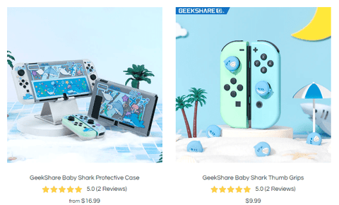From thumb grips to carrying cases, almost all the Switch accessories you need can be found here. You can check out the 🔗Baby Shark collection.